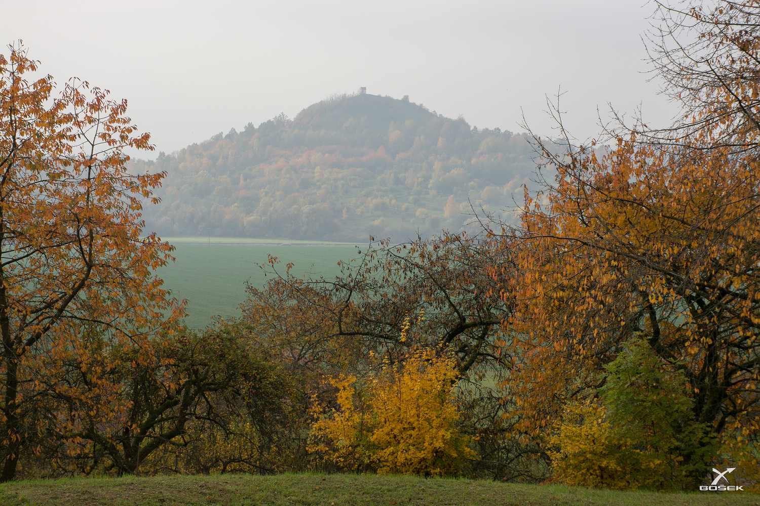 Odsud fotím trosky ještě jednou. Úplně vlevo je opět Zebín, ale ten jsem původně na fotce mít nechtěl. Nakonec jsem ho tam ale nechal a neořízl.