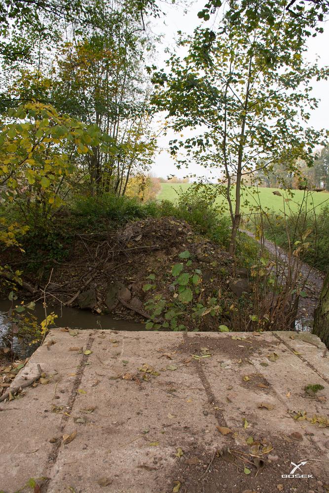 Jdeme k lávce přes Cidlinu. „Podle map.cz tu žádná lávka už není,“ hlásí z dálky Hroch. No, fakt tu není. Budem muset brodit.