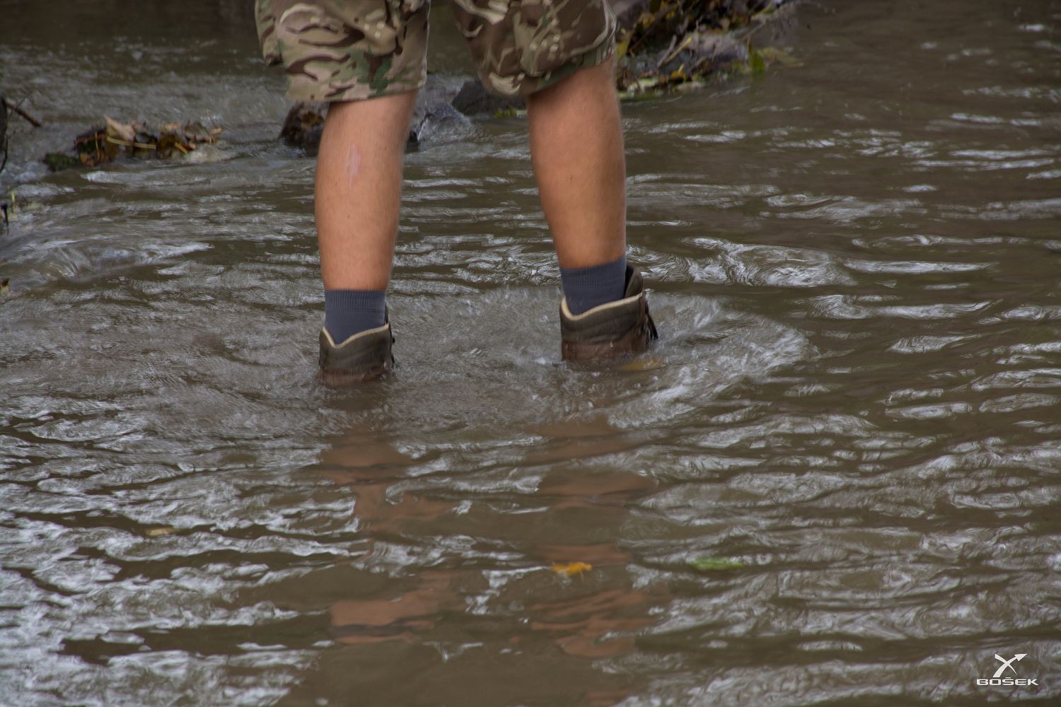 Jenom blázen Vlastík běží přes vodu tam, zpět a zase tam ve svých prodyšných pouštních vojenských botách.