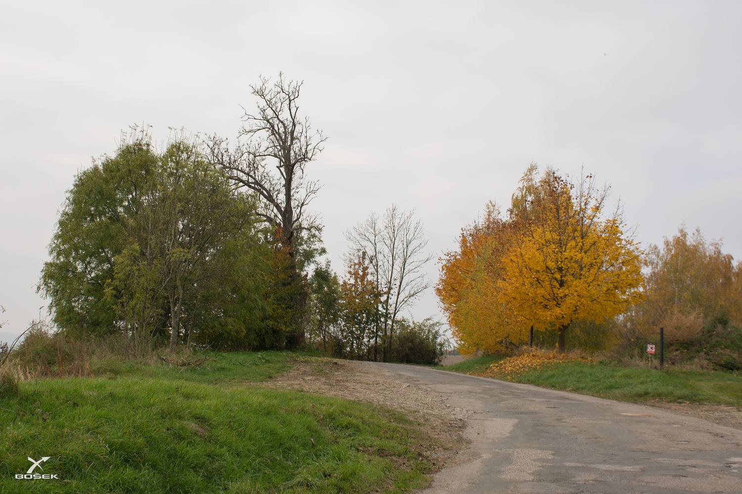 Z Dílců míříme po asfaltu do Brady. Na kopce na horizontu severně od nás skrz mlhu dopadají sluneční paprsky, tady je to ještě pod mrakem. Ty kopce patří k přírodní památce Cidlinský hřeben. „Tam je zřícenina hradu Kozlov, tam bych se chtěl taky jednou podívat,“ říká Hroch. Já na to: „Koukal jsem se na fotky Kozlova zhruba před měsícem, protože jsem měl naplánovanou trasu okolo. Ale nic tam není.“ „Já vím, ale stejně tam chci.“