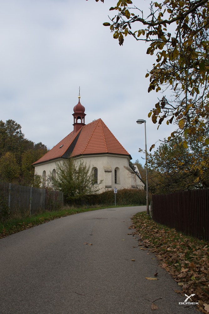 Stoupáme do kopečka a před námi je obec Brada a v ní kostel svatého Bartoloměje. Je to gotický venkovský bezvěžový kostel z počátku 14. století, který  prošel už několika rekonstrukcemi. Někdo pronesl větu, když jsme přišli blíž: „Cejtím tu něco jako spáleniště.“ No, dobrovolní hasiči to poznají.