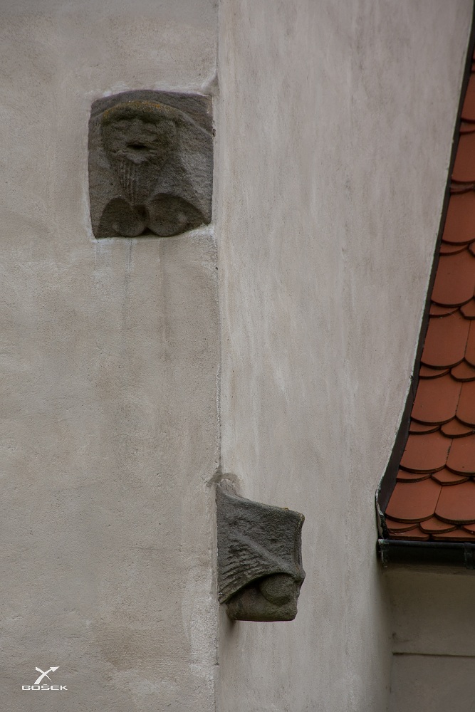 Otáčím se opět ke kostelu, Martin totiž fotí zajímavý nárožní kameny.