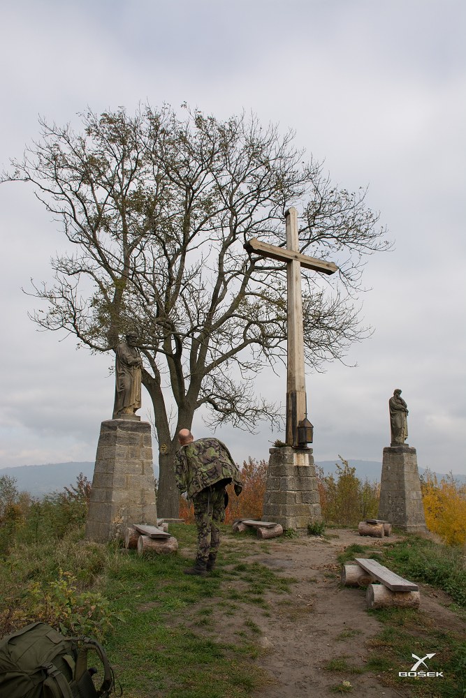 Jsme na vrcholu. Stojí tu na památku prusko-rakouské bitvy kříž a sochy svatého Petra a Pavla. Přichází za námi nějaké starší turistky a ta jedna se ptá druhé: „Čípak to jsou sochy?“ „V podstatě naše,“ odpovídá Hroch. Já jsem Pavel a támhle jsou dva Petrové.