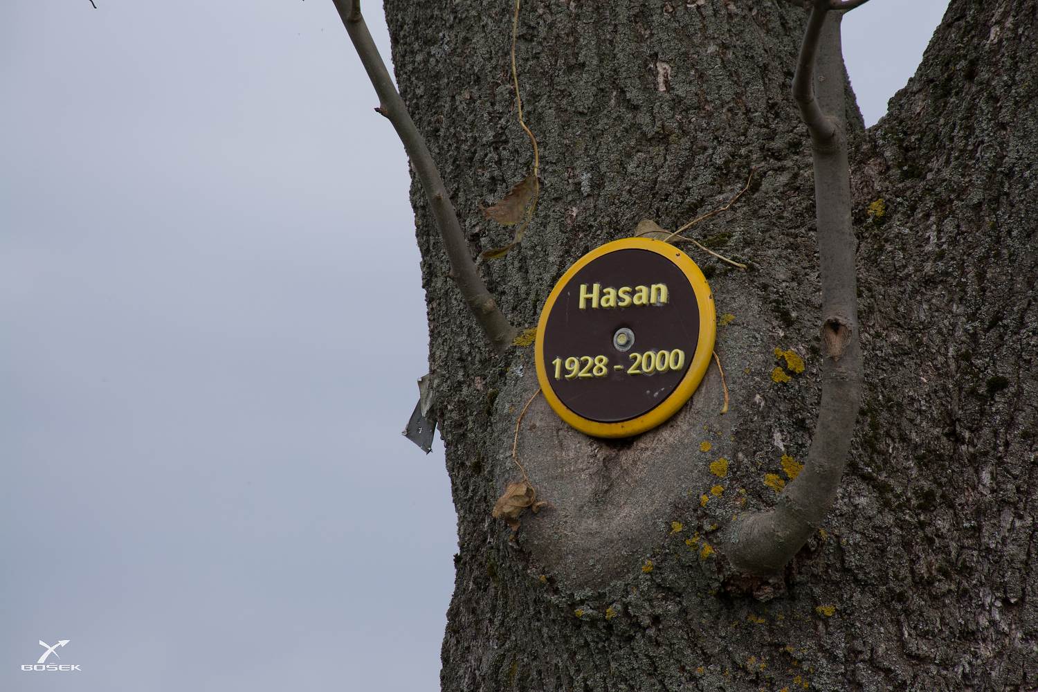 Za křížem stojí mohutný jasan a na něm tahle zvláštní cedule. Abych nezapomněl, u na tomhle kopci kdysi taky stával hrad a taky se kopec jmenuje podle něj Brada, nebo je to naopak?