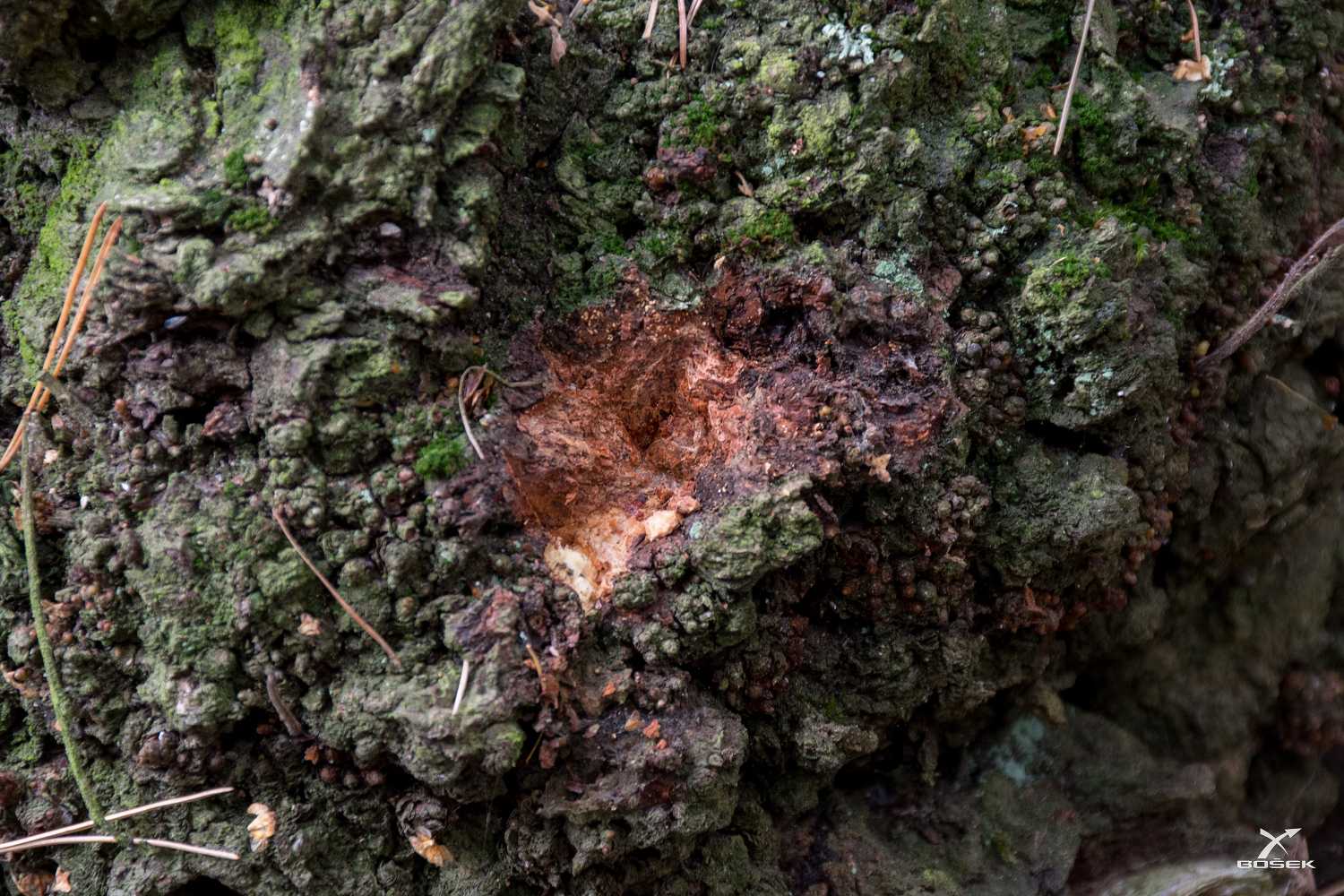 Freda si na dalším úseku cesty všimnul hrbolatého nádoru na bříze: „Hele čaga.“ Já na to: „Znám, Rezavec šikmý. Ale připadá mi to spíš jak nádor.“ Tak jsem do toho párkrát zabodnul kudlu a je to fakt čaga. Hroch si odlomený kousek vzal, že ho vyzkouší do čaje.