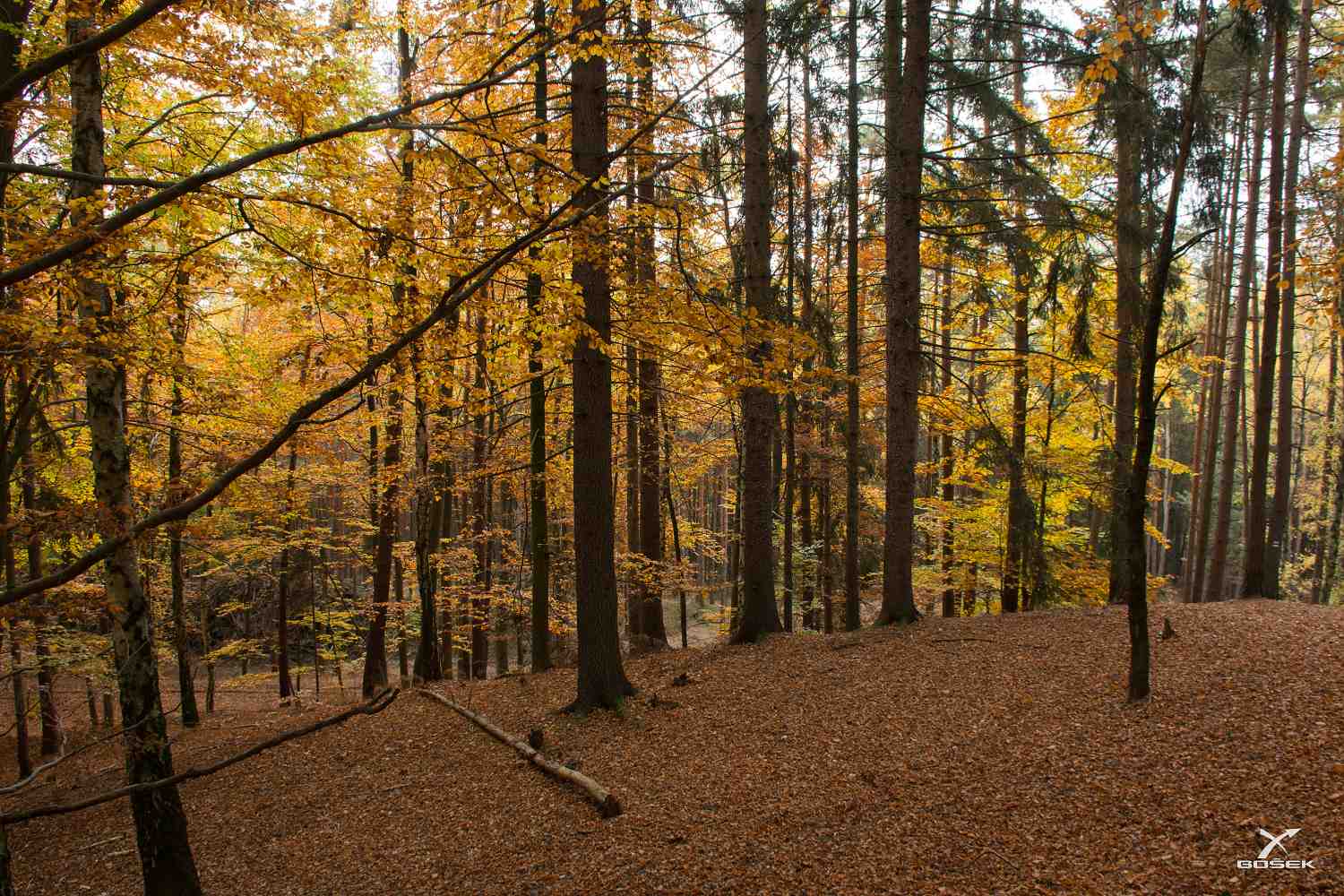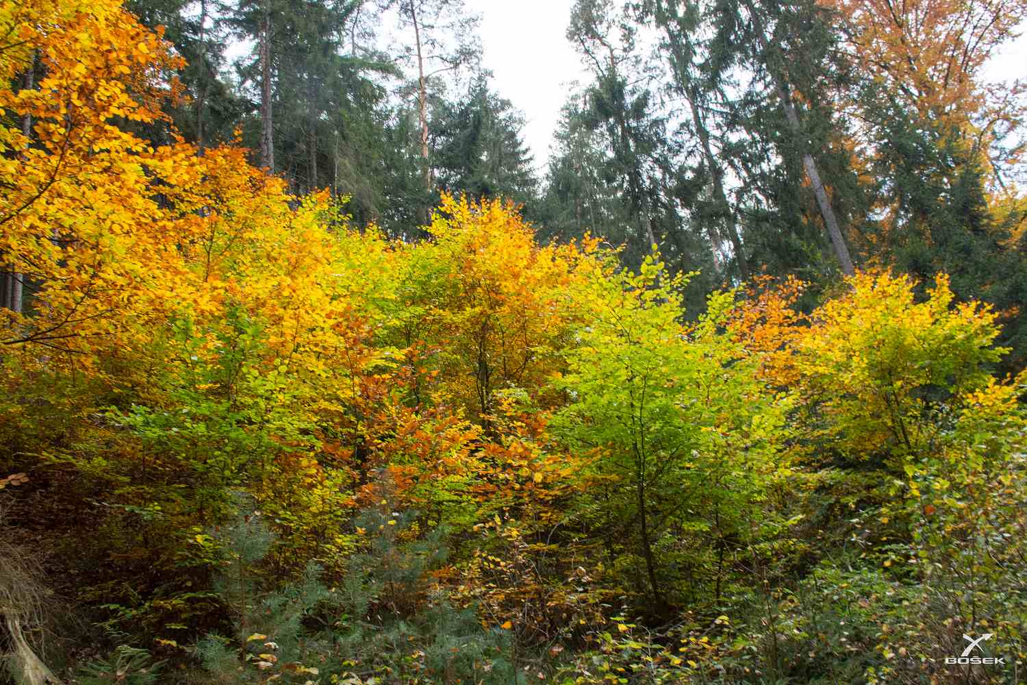 Borový les postupně přechází v bukovo-smrkový. I na zemi je spousta bukového zlata. Nádhera veliká.