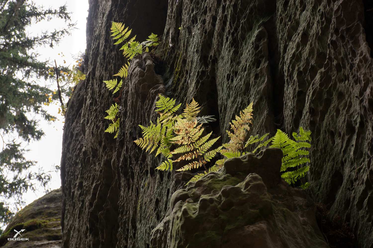 Tak tohle je fakt nádhera. Někdo by si toho možná ani nevšiml, ale moje oko přitáhnul ten kontrast svítivých kapraďů a tmavé skály.