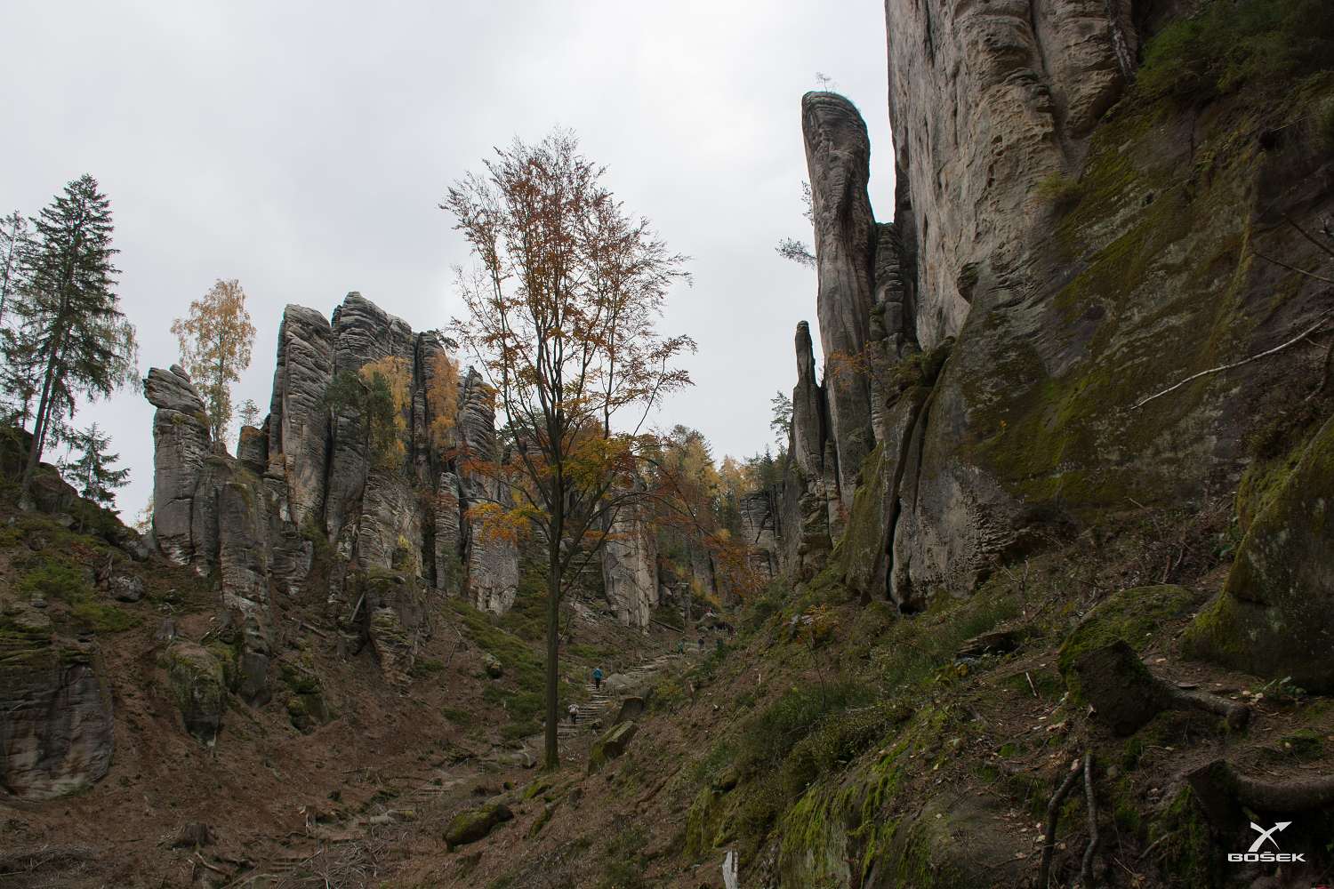 Je to tu fakt krásný. Po stranách se začínají objevovat čím dál blíž obrovský pískovcový šutry.