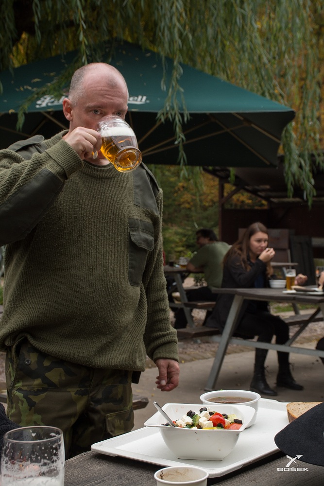 Seděli jsme u třech stolů, protože tu bylo celkem volno a k jednomu se přidala tahle návštěva. Někdo říkal, že je to Tesařík, ale mně to připadalo spíš jako Ploštice.