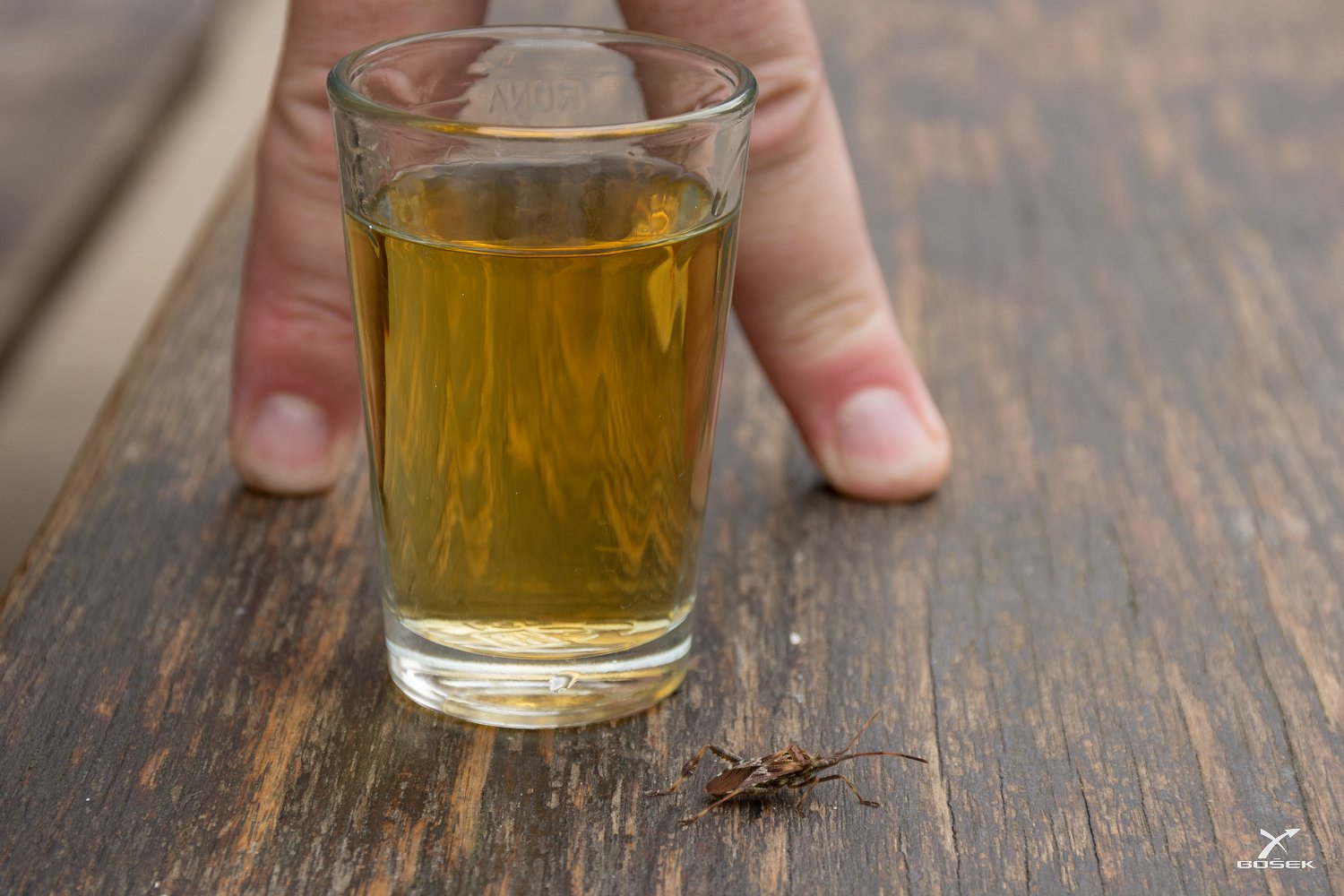 Ke druhému stolu k mému panáku od Vlastíka přiletěla stejná návštěva. Doma jsem zjistil, že je to Vroubenka americká. A opravdu patří mezi ploštice. Škoda, že jsem ji nevyfotil líp. Už mám ve sbírce Vroubenku smrdutou a jalovcovou, ale tuhle ještě ne.