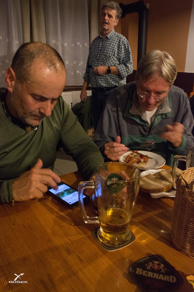 Vrchol Železného jsem dobyl, ale kluci nikde. Byl jsem domluvený s Hrochem, že mu případně v devět zavolám. Takže volám, kde jsou. Slibuje, že mi pošle „špendlík“, tedy GPS souřadnice pro Mapy.cz. Na konci telefonátu slyším: „Ty vole Pirmin, co chce?“ Asi mu do mého hovoru zavolal i on.