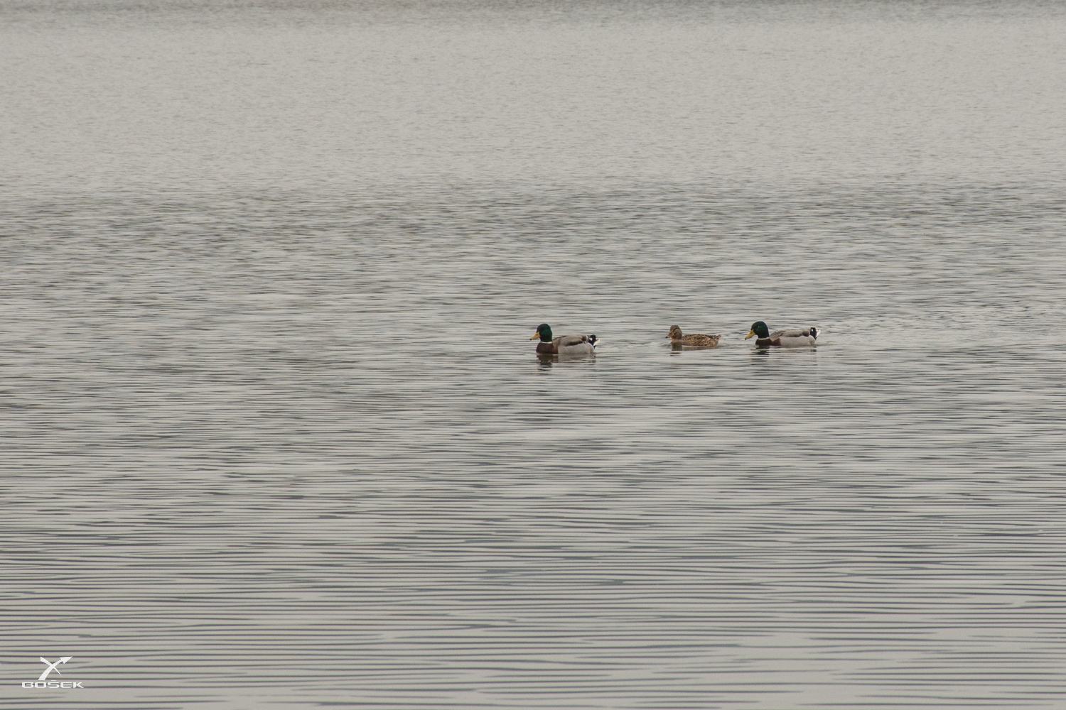 Došli jsme až na hráz. Předtím byly na kačenu kačeři dva a v téhle skupince dokonce tři. Asi jsou samičky nedostatkový zboží, jak jsem už několikrát v přírodě pozoroval.