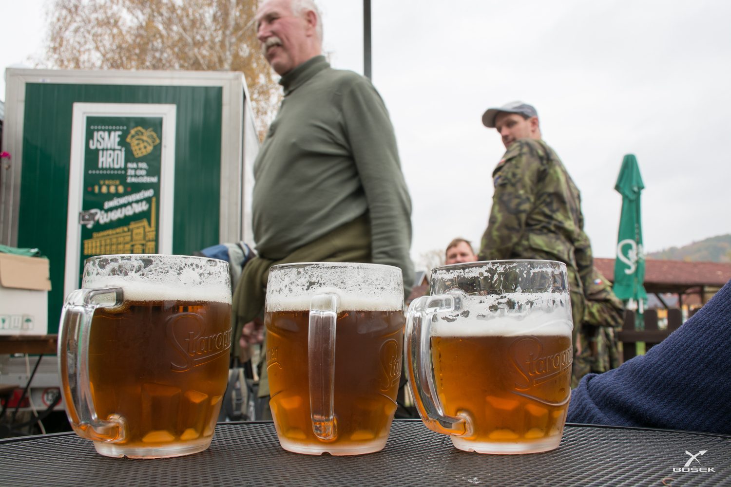 Úspěšně jsme dorazili do hospody Příhrazy. Na mapách je ta hospoda pojmenovaná „Hospoda v Příhrazích“. Já bych teda osobně napsal „v Příhrazech“, protože jsme to tak zvyklí říkat, ale na ceduli je „Hospoda Příhrazy“, takže není co řešit. Teď už si dáváme ale pivko a vzpomínáme na tyhle půllitry, jak jsme z nich pili na zimním čundru v obřím sudu na Javorníku.