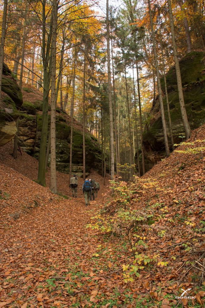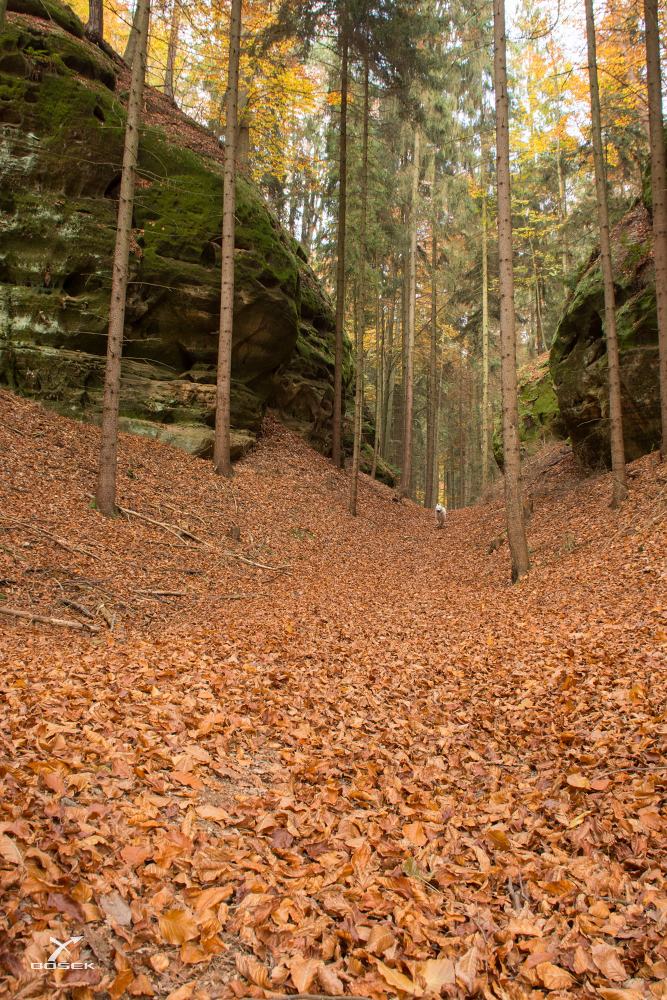 Z relativní roviny se dostáváme do rokle, která je místama fakt úzká.