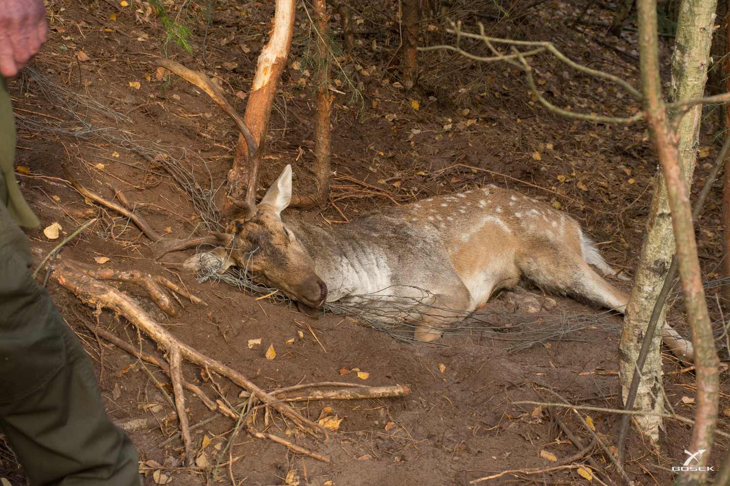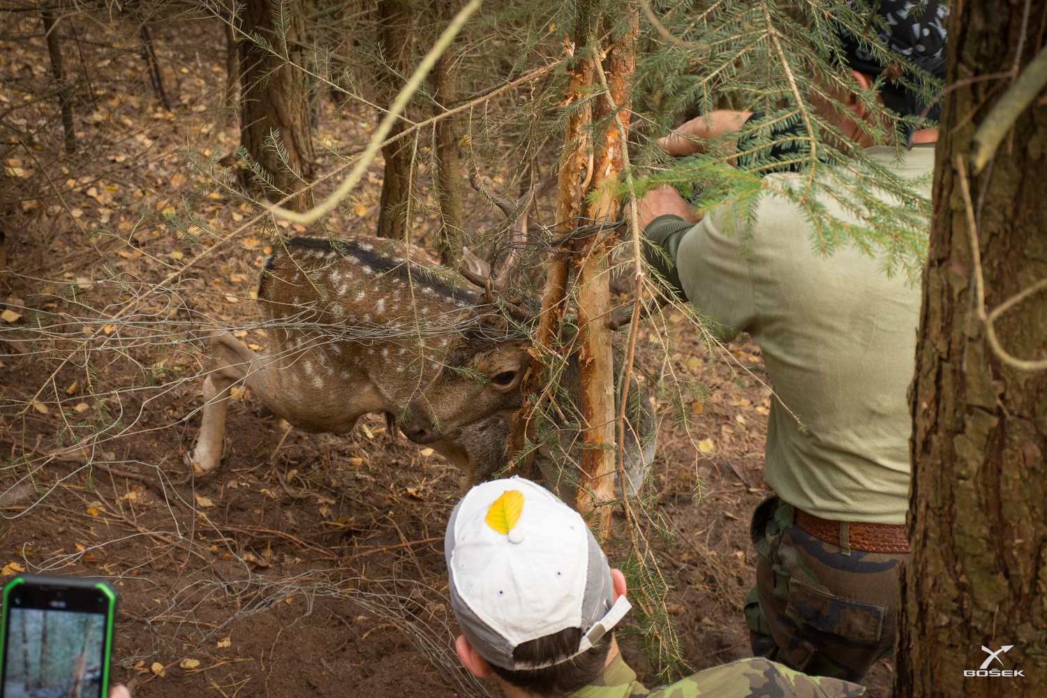 Ještě aby ne. Snaží se vyprostit daňka z pletiva. Musí tady být už pěkně dlouho, všechno je podupaný z obou stran, kůra na stromku oholená odspodu až bůhvíkam. Chvílema daněk stojí klidně, chvílema bojuje. Klukům se podařilo ho zpacifikovat a pochopil, že musí zůstat ležet, nevzpírá se …