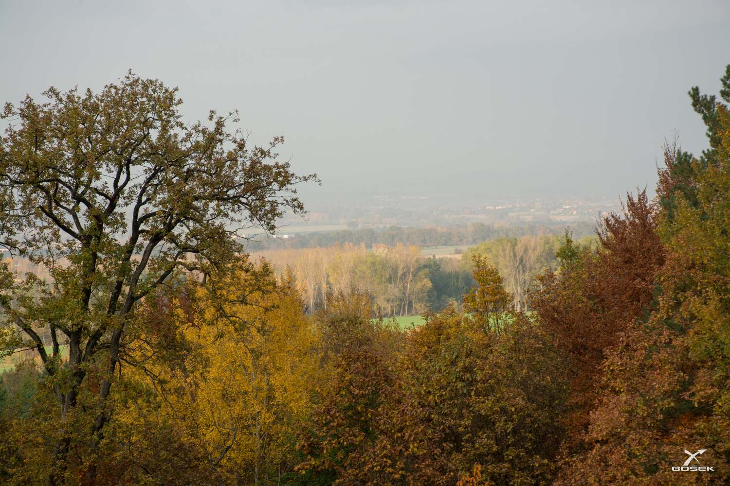 Trochu se otevřel výhled do kraje, ale vidět toho fakt moc není. Vůbec netuším, co je to za obec dole, jestli Doubrava nebo Žďár …