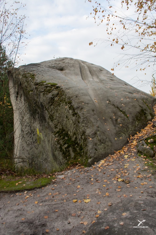 Hned vedle klouzačky je velký oblý balvan. Ani nevím, proč jsem Kliďase fotil. Ale aspoň má ode mě sólo fotku.