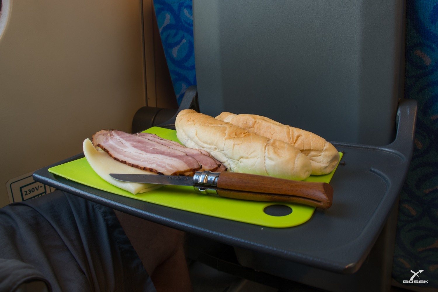 Doma jsem si udělal jen kafe a snídám až ve vlaku. Jedu z Hradce Arrivovu. Vždycky mě překvapí, jaký typy lidí u nich dělají štiplístky. Ten náš dneska má v jednom uchu dva kroužky a ve druhým pět. Je pokérovanej a má havraní vlasy do culíku. Ale už od prvního dojmu je úplně v pohodě, dokonce jsem s ním prohodil i pár slov.