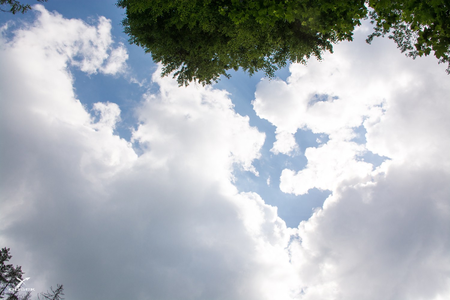 Dáváme pauzu na výměnu tekutin, je tu průzor na oblohu. Mraky tu s blankytem nebe hrají hezkou hru. Slyším nějaké šustění dole v listí. Je tu v pohybu tolik lesních mravenců, že jsou všichni společně slyšet, aniž bych se na to soustředil nebo se k nim shýbal.