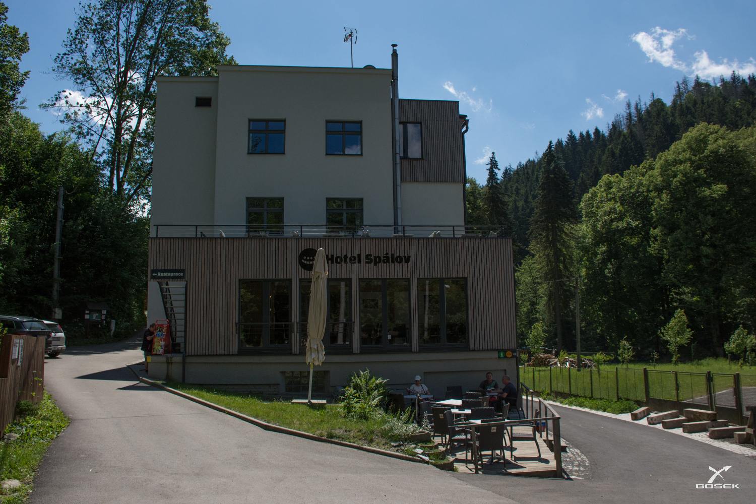 Došli jsme až do Spálova. Co si vybavuju, měl by tu být někde kiosek nebo nějaké občerstvení a ne hotel. Zkusíme se podívat po okolí.
