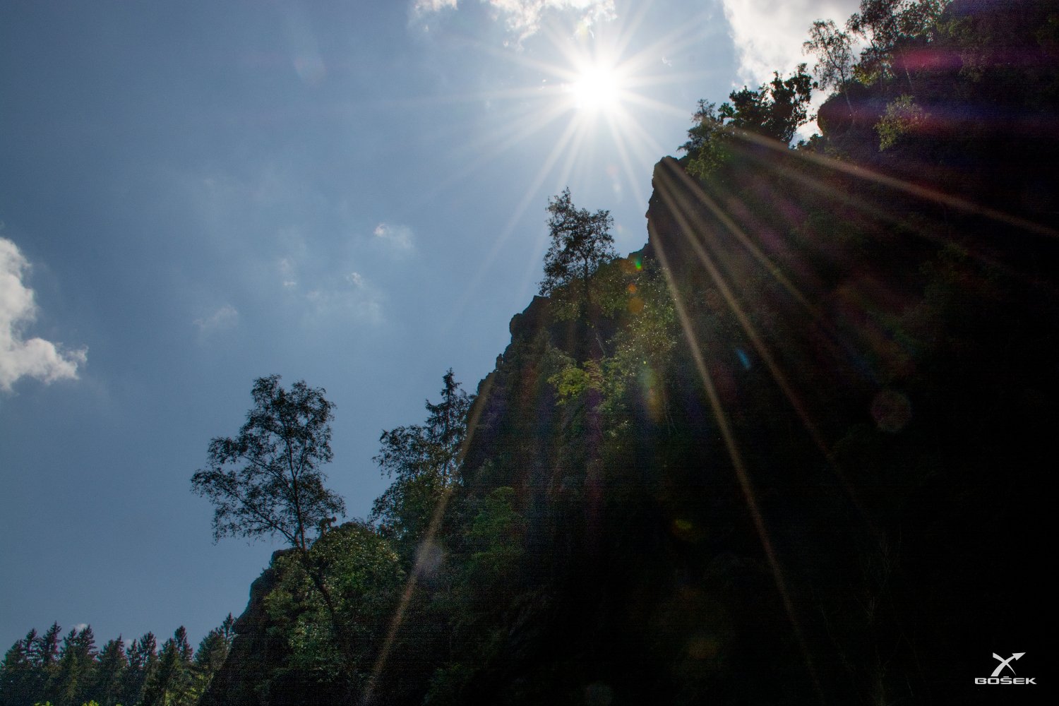 Zkouším fotit skály naproti i se sluníčkem v záběru. Jestli se mi to aspoň trochu povedlo, čtete o tom tady a fotku vidíte …