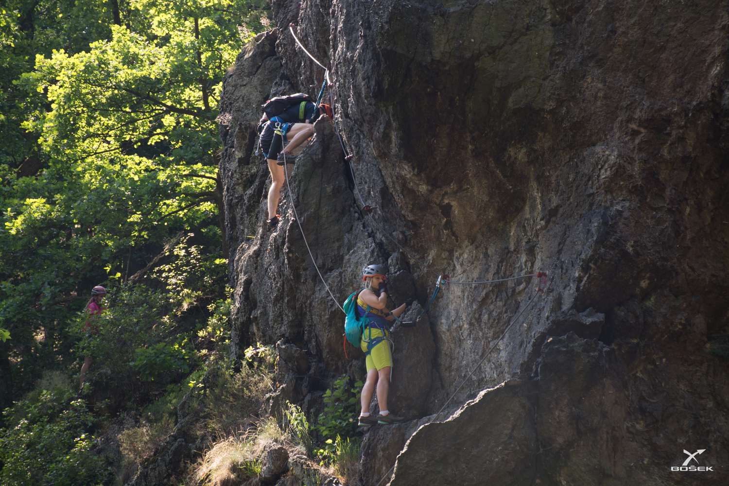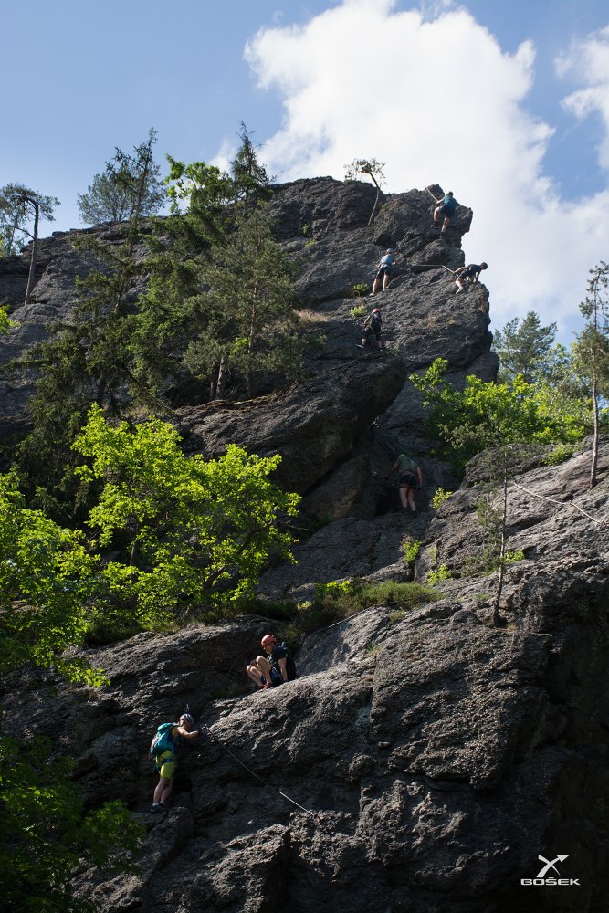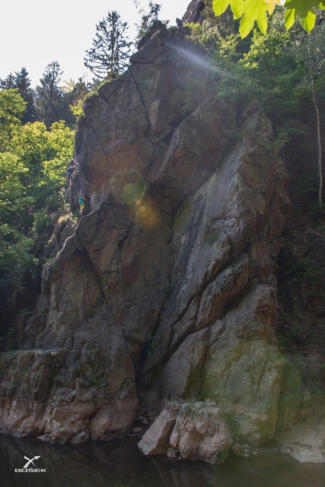 Janča mi říká, že jsou konkrétně na téhle skále tři obtížnosti, a to B, C a D. První dvě má projité a tu třetí nejtěžší by ráda zkusila. Chce to ale prý brzo ráno. Proč?