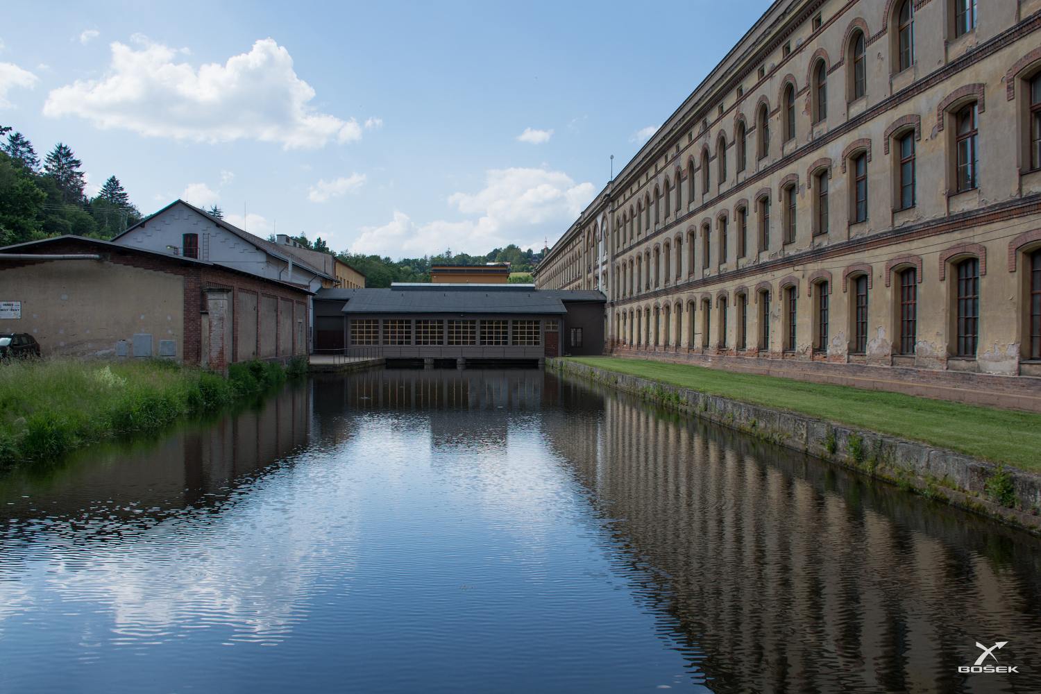 Před tou zavřenou hospodou je náhon a na něm relativně hezká stavba. Vypadá to, že by to mohla být funkční elektrárna, tak možná část fabriky ještě žije.