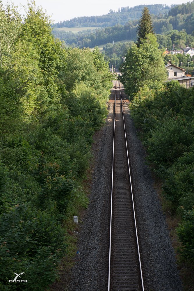 Do města z jeho okrajové části Bítouchov přecházíme po hezké relativně nové téměř třicetimetrové lávce.