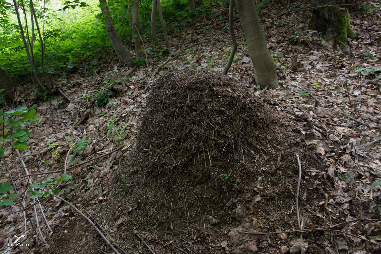 Ze silnice po chvíli odbočujeme na žlutou do lesa. Hned kousek od asfaltky je tu krásné, a navíc takhle do výšky stavěné mraveniště, to se často nevidí.